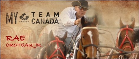 A rising superstar of the professional chuckwagon racing, Rae Croteau Jr. has spent eight years riding on the Dodge Pro Tour, winning three consecutive Strathmore Heritage Days from 2005-2007, and the Croteau Chuckwagon Team received the WPCA's Equine Outfit of Excellence for best outriding horse 'Amersham' in 2007. As a former member of the Canadian Professional Chuckwagon Association, Rae also holds the CPCA track record at the Regina Buffalo Days, was the CPCA’s Top Rookie Outrider in 1996, CPCA Top Rookie Driver in 1999, and CPCA Most Improved Driver in 2000. Rae is a third generation driver – he is the grandson of retired veteran driver Ray Croteau and the son of fellow competitor and championship driver Bert Croteau.