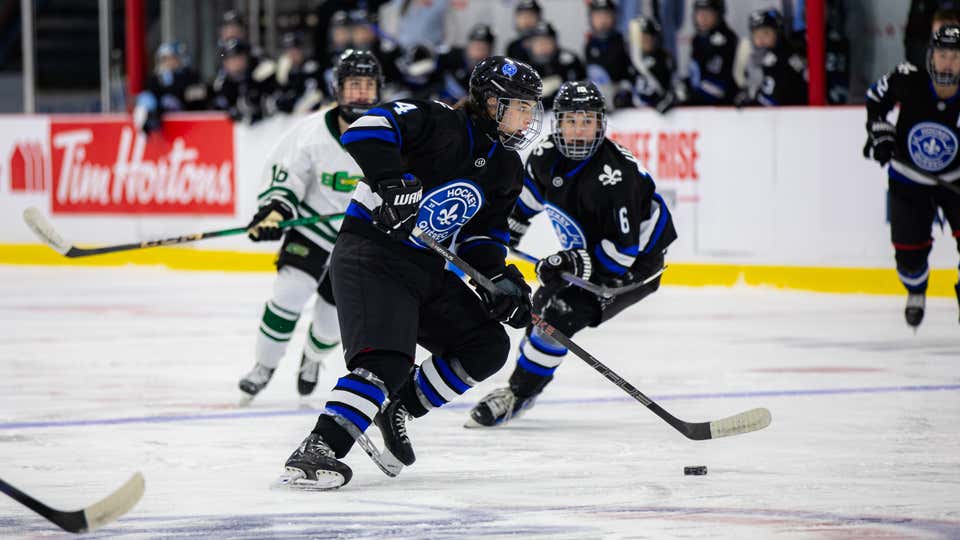 Zoé Charland, Rosalie Tremblay et Madison Lévesque marquent, Léa-Rose Charrois fait 23 arrêts, et le Québec bat l’Atlantique pour gagner sa première médaille d’or.